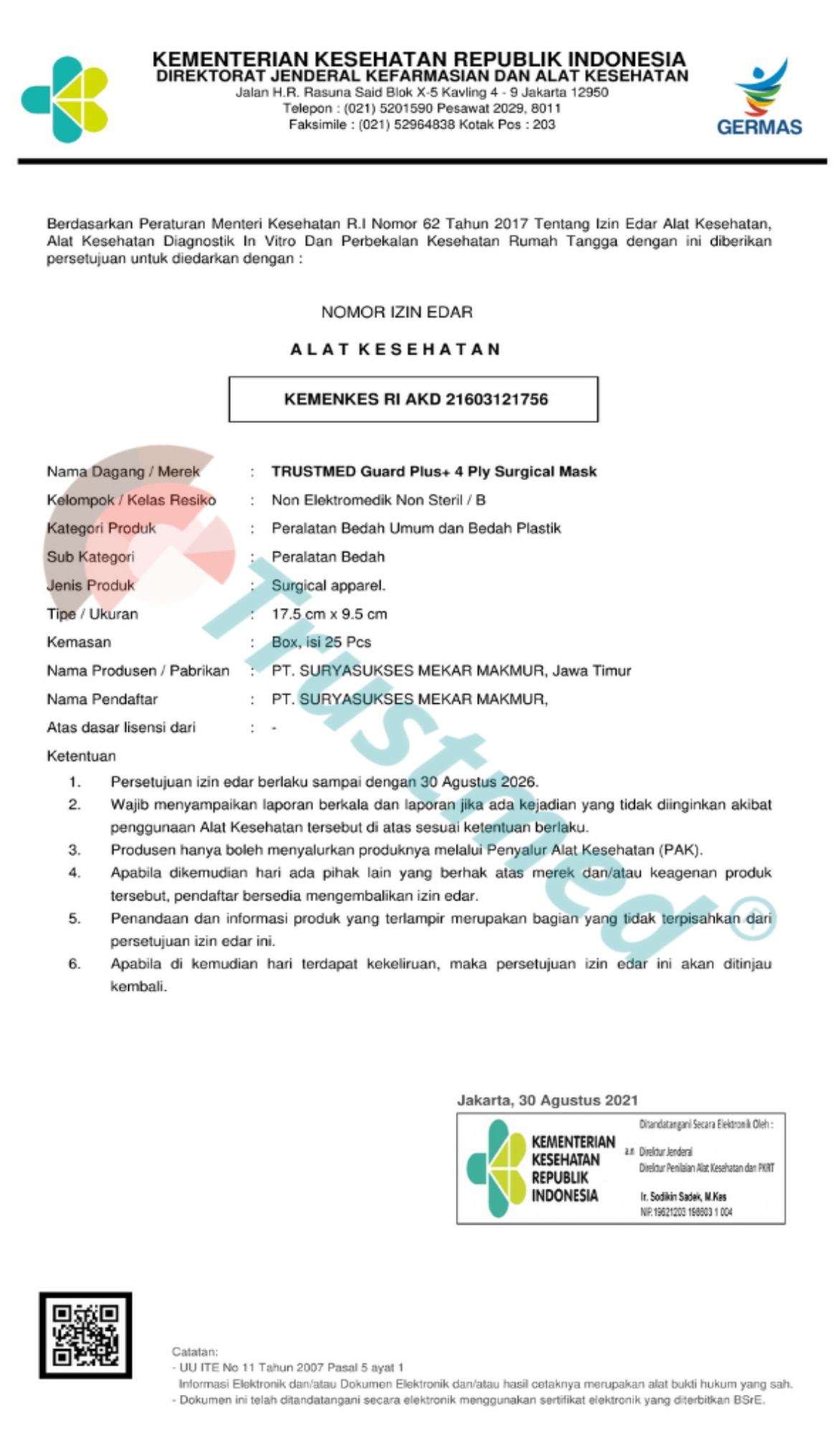 Verified license to manufacture and distribute from Indonesia Ministry of Health.